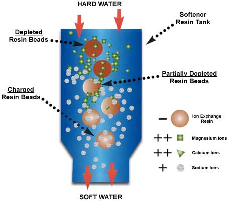Dalam proses pelunakan ini, ion-ion kalsium dan magnesium disingkirkan dari air berkesadahan tinggi dengan jalan pertukaran kation dengan natrium.